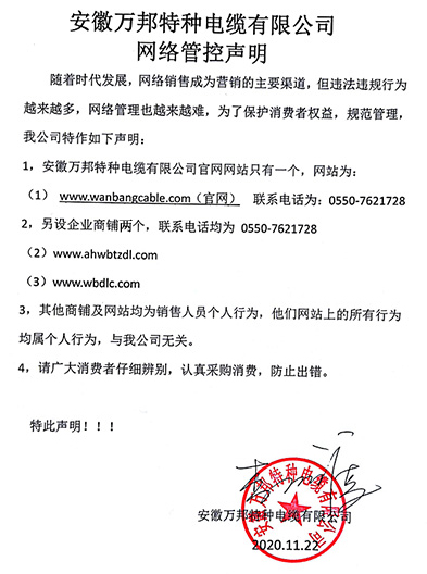 鄭重聲明:安徽萬邦特種電纜有限公司官方網站為:www_wanbangcable_com.xdl930.cn,除此之外無任何子網站或合作網站,其余均為假冒偽劣。電話:0550-7621728 13485756353 地 址:安徽省天長市滁州高新技術產業開發區經四路29號